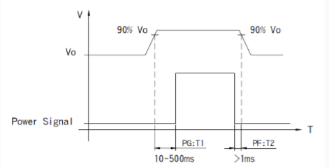 某些电源供应器在开机、关机时会送出"Power Good"或"Power Fail"讯号做为监测控制用。Power Good:指输出达到90%额定电压后延迟数十至数百ms 后送出一TTL 讯号。Power Fail:指输出低于90%额定电压前,提前1ms 以上将TTL 讯号关闭。